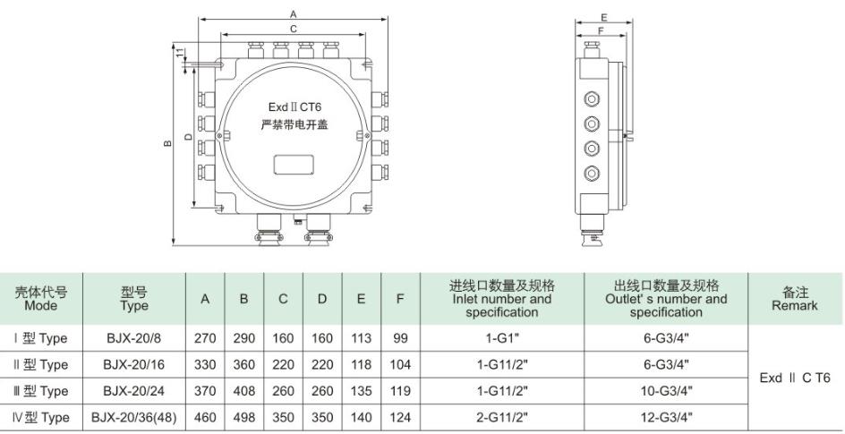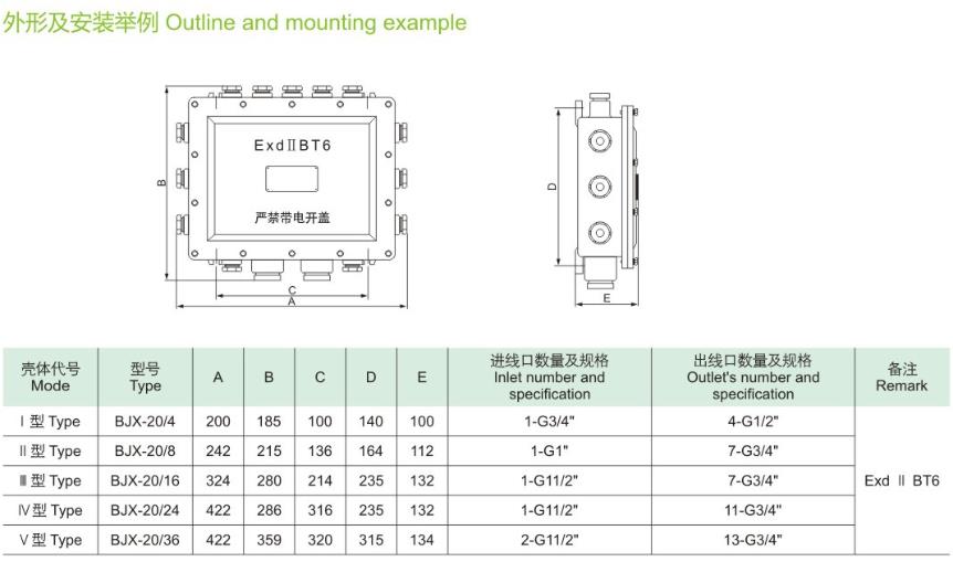 接线端子采用增安型专用接线端子,接线方便、牢固可靠,并且根据电流大小有多种规格可供用户任意选择;