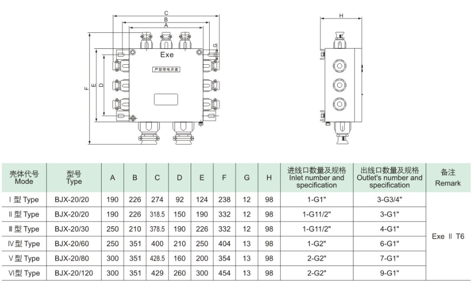 ●防爆标志:ExeT6、Exd ll BT6、Exd ll CT6
