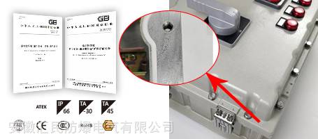 防爆结构:本司承诺所有防爆产品均严格按照国家防爆标准系列文件设计,完全达到国家防爆标准等级和设计要求,并取得相关国家防爆证书及检测报告,证书可靠,品质优良。